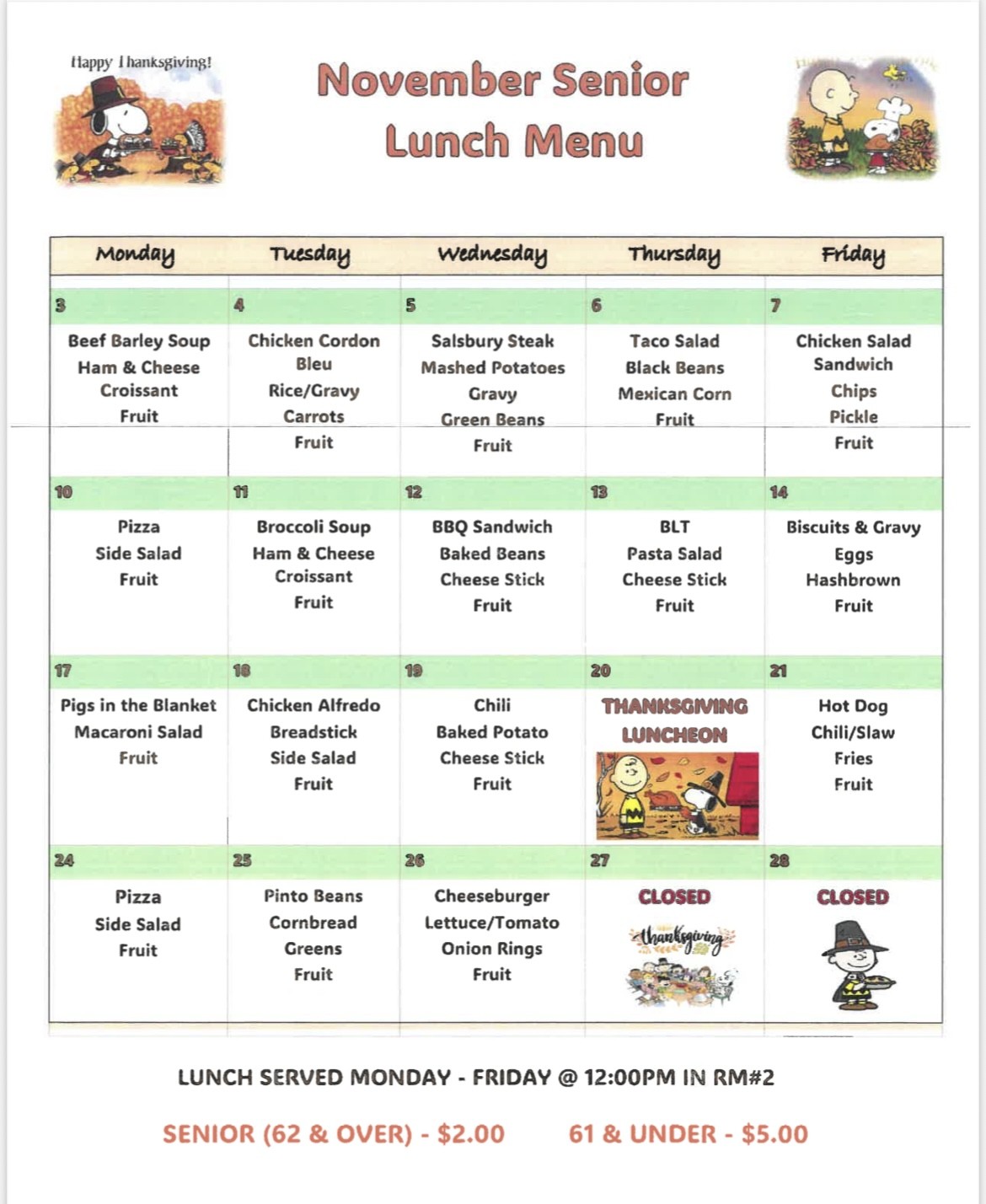 NOVEMBER LUNCH MENU